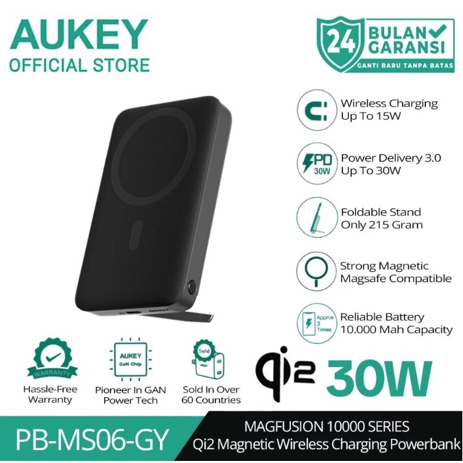 AUKEY Qi2 Magsafe Wireless Powerbank 10000mah USB-C 30W PD Slim Portable PB-MS06